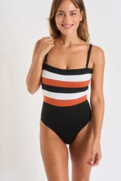 Maillot De Bain 1 Pièce Bi-couleur Marron Et Blanc MARIETA AUKANA